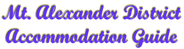 The Mount Alexander District is located in the heart of the Central Victorian Goldfields in Victoria, Australia. It is a vibrant and historic region, only 70 minutes from Melbourne, and in close proximity to Ballarat, Bendigo and Daylesford. This makes it an ideal place to holiday or just get away for a weekend. This is the most Comprehensive and up to date accommodation guide for the Mt. Alexander District available anywhere. This guide incorporates the towns of Campbells Creek, Castlemaine, Chewton, Elphinstone, Fryerstown, Guildford, Harcourt, Maldon, Muckleford, Newstead, Ravenswood, Taradale, Vaughan Springs and Welshmans Reef. We will soon be expanding this guide to include all services & facilities within the district. |